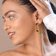 Enhance the elegance of the Multi-Gem Arrow Danglers by pairing them with sleek, tailored outfits in soft neutral shades. Opt for a simple hairstyle that allows the earrings to be the focal point, and complement with minimal gold or silver jewelry to maintain a sophisticated and polished look.